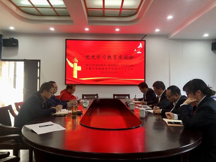 10月29日下午,安徽中铁健康服务有限公司党支部支委成员一行4人在党支部书记方钦安同志的率领下到访我院,并与我院党支部在院会议室举行党史学习教育座谈会。我院党支部支委成员参加了座谈会。