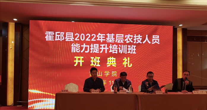 11月21日,霍邱县2022年农技推广补助项目农技人员能力提升培训班(第一期)顺利开班,开班仪式由2138CC太阳集团副院长殷猛主持。