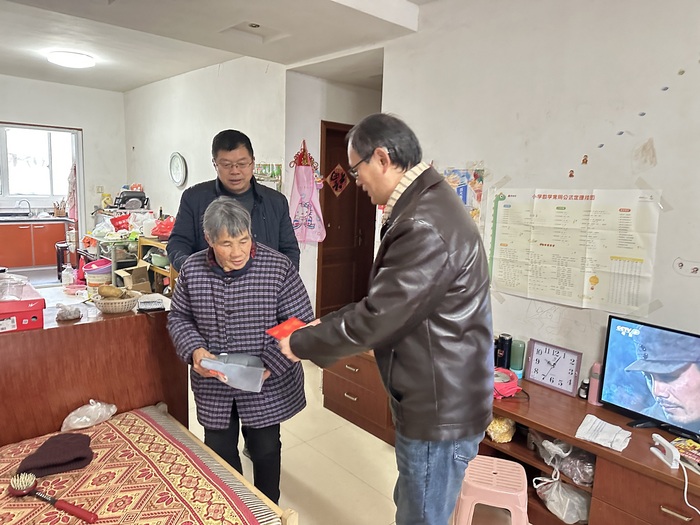 在困难单亲女大学生家里,支部同志细心询问专业学习情况,鼓励她要坚定专业信心,努力学习,相信知识就是力量,用奋斗造就美好明天。在高龄残疾困难群众家中,支部同志耐心了解家庭情况,提醒老人要注意休息保暖,并祝愿他们过一个祥和快乐的春节。