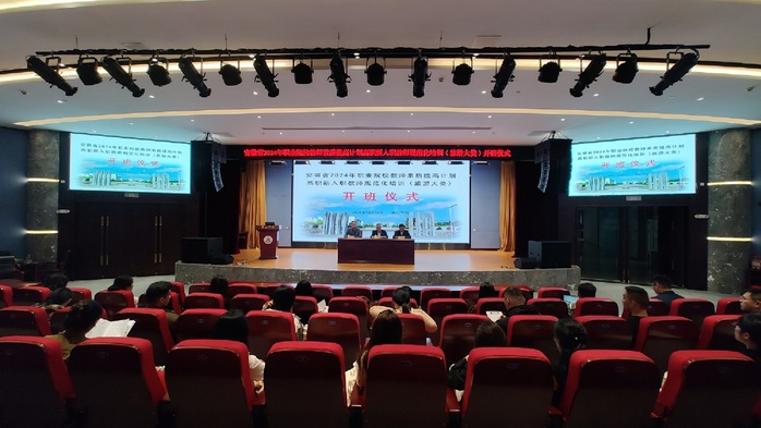 10月10日上午,我校承办的安徽省2024年职业院校教师素质提高计划省级配套项目——高职创新项目旅游大类新入职教师规范化培训班在我校率水校区文博楼二楼报告厅顺利开班。我校2138CC太阳集团和旅游学院负责人、有关工作人员、以及培训班全体参训学员参加了开班仪式。